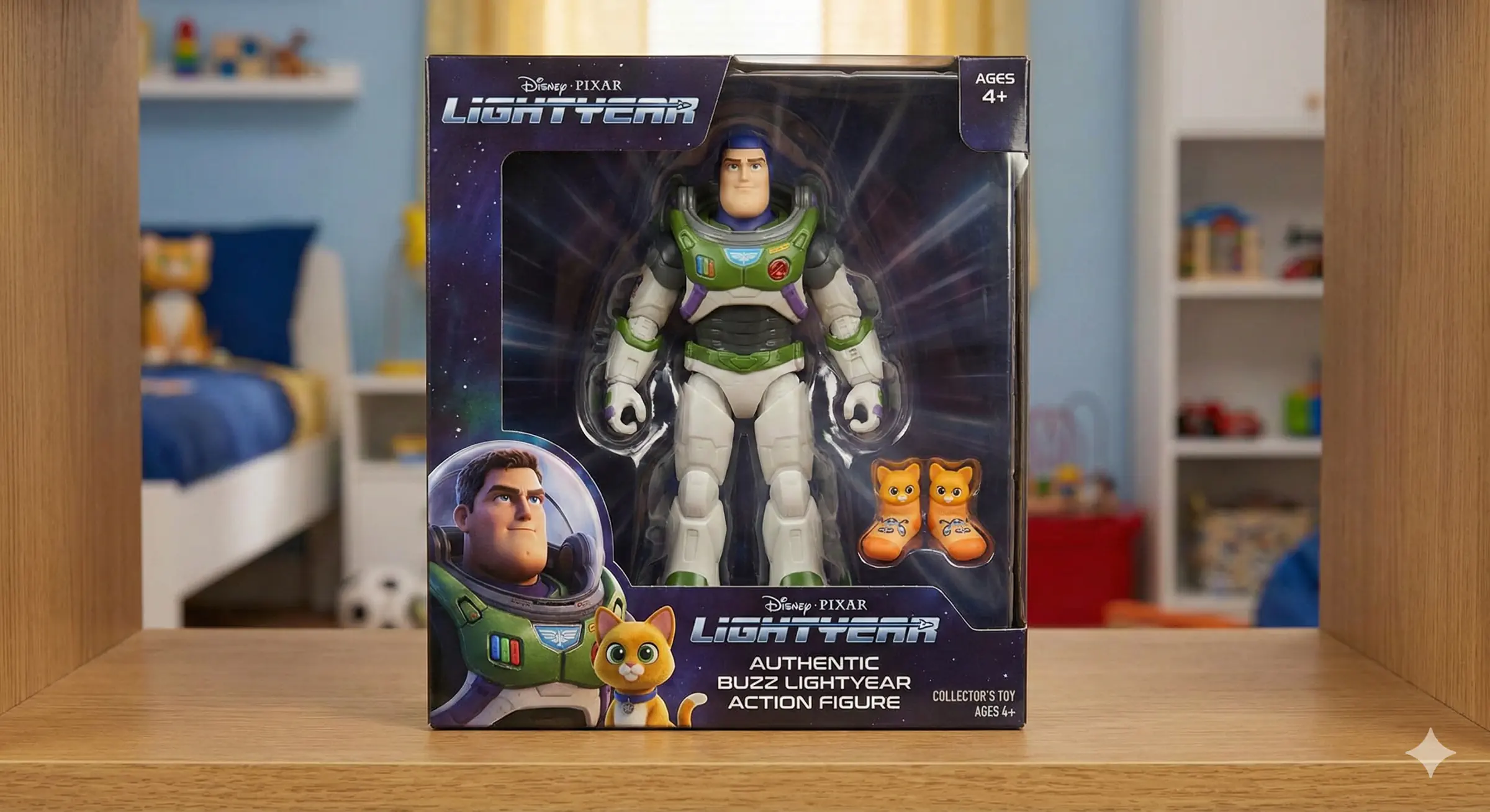 Figura de acción auténtica de Buzz Lightyear & Sox; 12 articulaciones posibles y calcetines de gato robot, juguete coleccionista de películas a partir de 4 años.